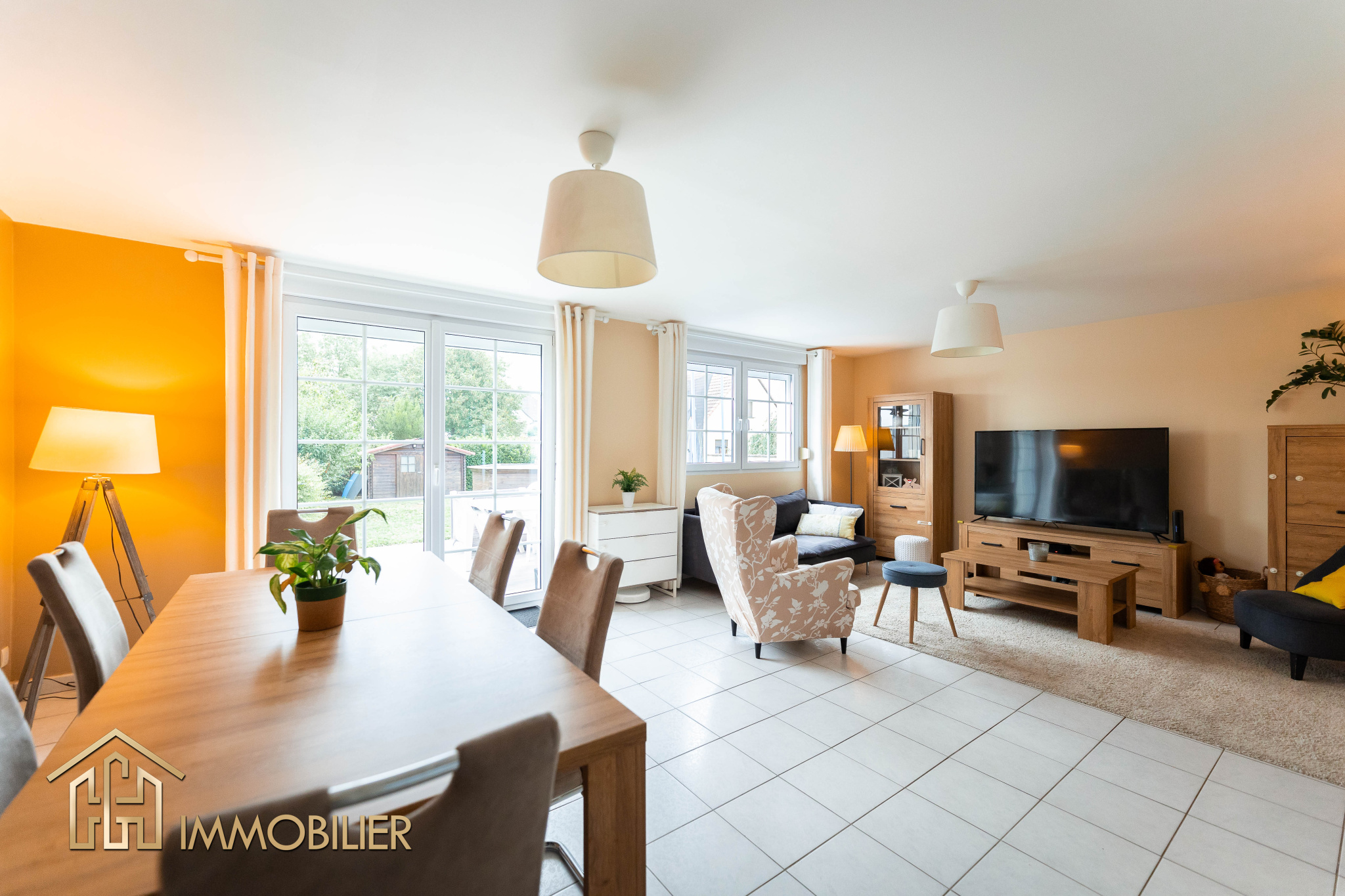 GH Immobilier vous présente cette jolie maison mitoyenne de 2007 au calme dans la commune d’Huttenheim. D’une superficie de 108 m2 sur une parcelle de 4 ares, vous profiterez de très beaux espaces de vie, d’un sous-sol complet, d’un garage, ainsi que d’un joli jardin arboré de 300 m2 disposant d’une terrasse, d’une cabane de jardin en bois, ainsi que d’un coin potager.